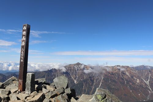 ジャンダルムに登った。 しかし、奥穂高岳から行くとこれはまだ全体の4分の1にも満たない。ここからさらに岩岩岩の連続なのだ。 ジャンダルムからの下りは険しいスラブ状の岩だ。 スラブとは滑り台のような傾斜を指す。特に穂高岳周辺は脆く、瓦のような形…