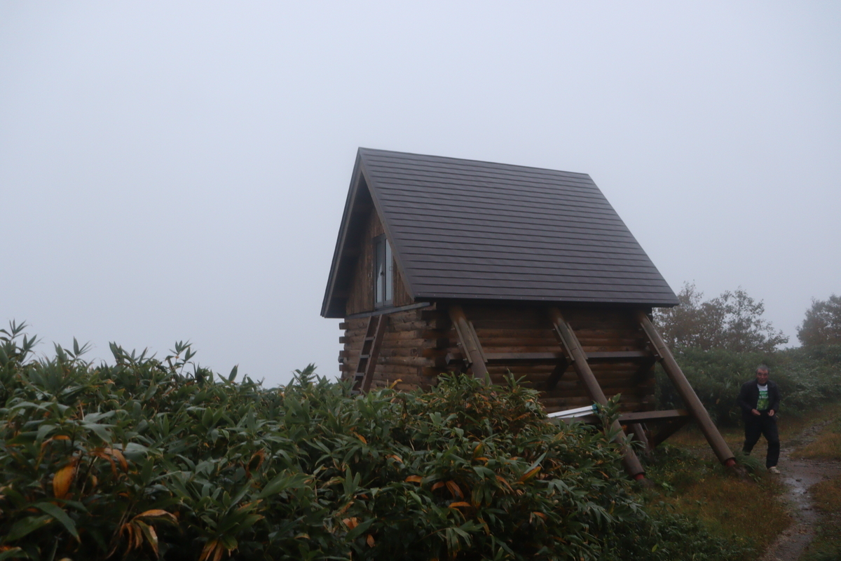 「おお避難小屋!」と思ったらそれは立派なトイレで、避難小屋はその奥、トイレよりやや小さな建物だった。