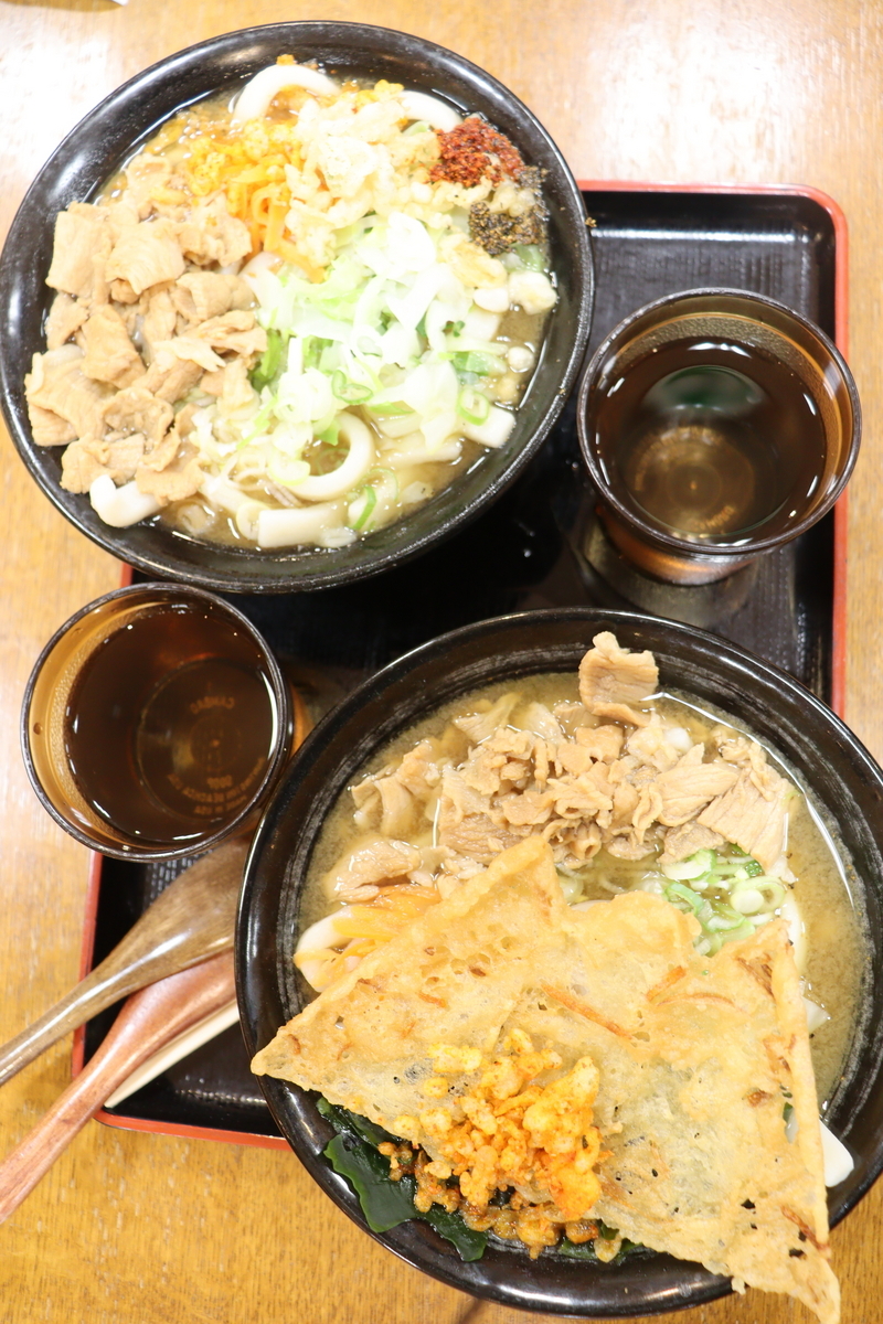2023-11-13 富士山を巡るグルメ 料理 旅行 先週末に富士山駅から本栖湖、富士宮、三島、沼津を巡った時のグルメ紹介。 まずは富士山駅のフードコートで食べた吉田うどん。 吉田うどん2杯 私のが上の肉うどん大盛で、相方は下の富士山うどん。かき揚げが富士山型なのだ。 朝霧の牛乳 朝霧高原では牛乳。 味は、まあ普通でした。 三島では念願の上鰻重。 通常価格5500円が4000円になっていた。それでもわれわれにとっては超高級。 沼津の海鮮丼 最後に沼津で海鮮丼。 自転車で消費したエネルギーはしっかり補給された気がする。