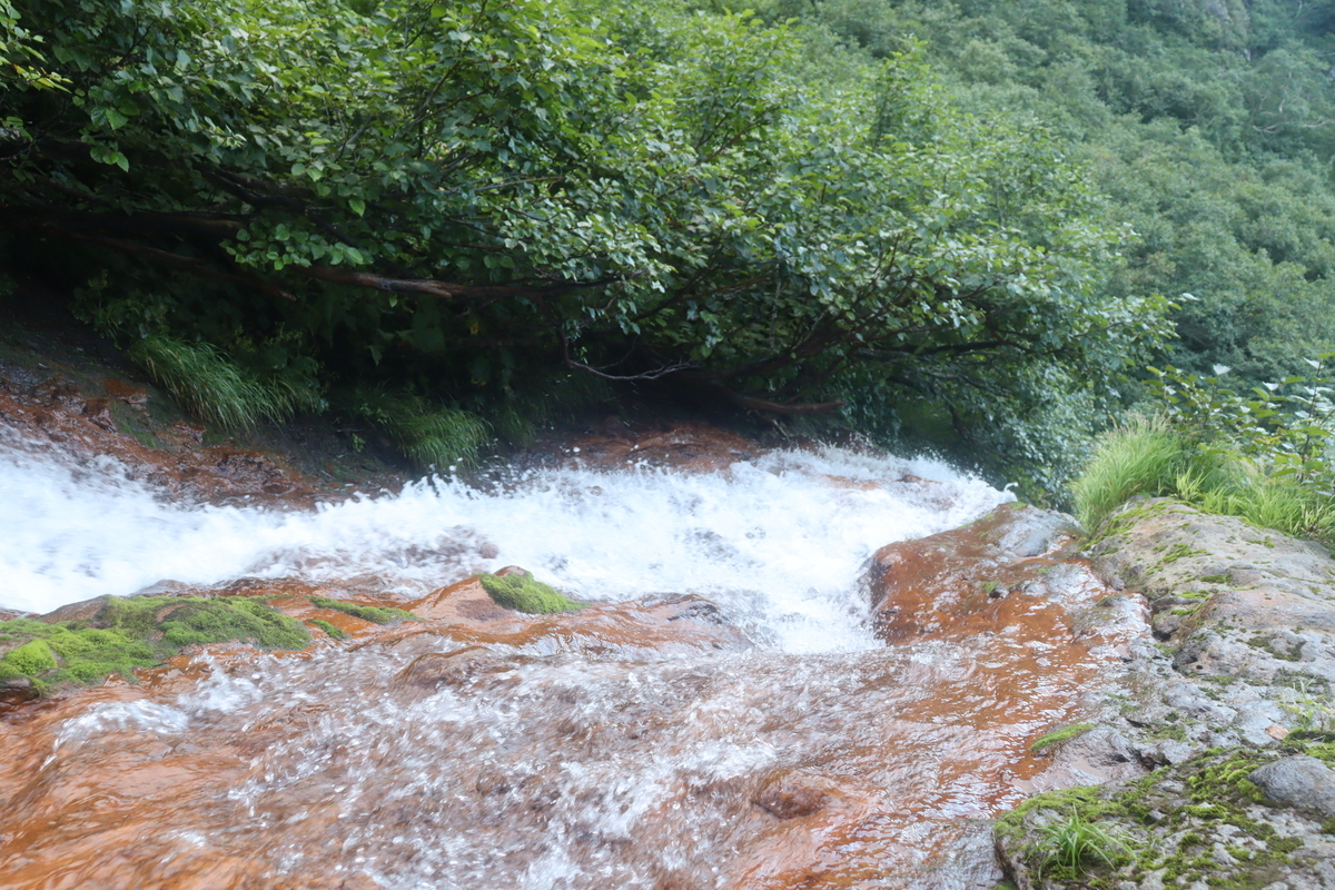 足回りが沢足袋ならいいのだけど、普通の登山靴だと水の中にドボンとはしたくない。しかし、ドボンを恐れると転倒の恐れもあって、この辺りがなかなか面白くも難しいルートとなっている。われわれが登った前日には転倒してヘリで収容された人もいたらしい。清里町には病院がないので網走まで運ばれたのだとか。